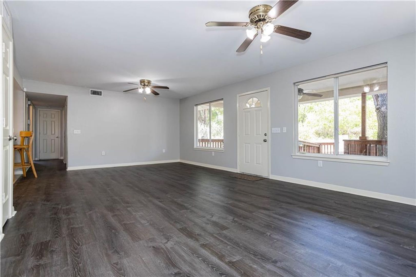 Stunning Renovated 3 Bedroom/2 Bath in East Austin Ready for Move-in! New Hardwood flooring, tile in Kitchen. Granite countertops, breakfast bar, newly painted kitchen cabinets, with plenty of cabinet space! Two ceiling fans in living room, and large windows provide exceptional natural lighting in each room! Beautiful covered front porch with fan and massive private back/side yard! Hurry, this one won't last long!