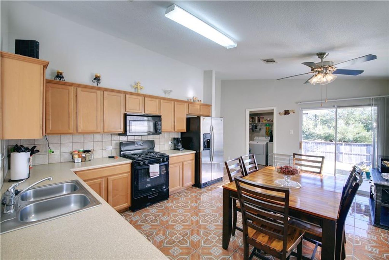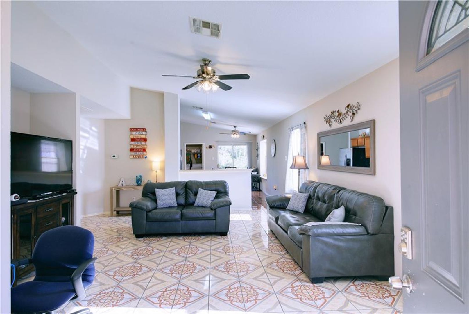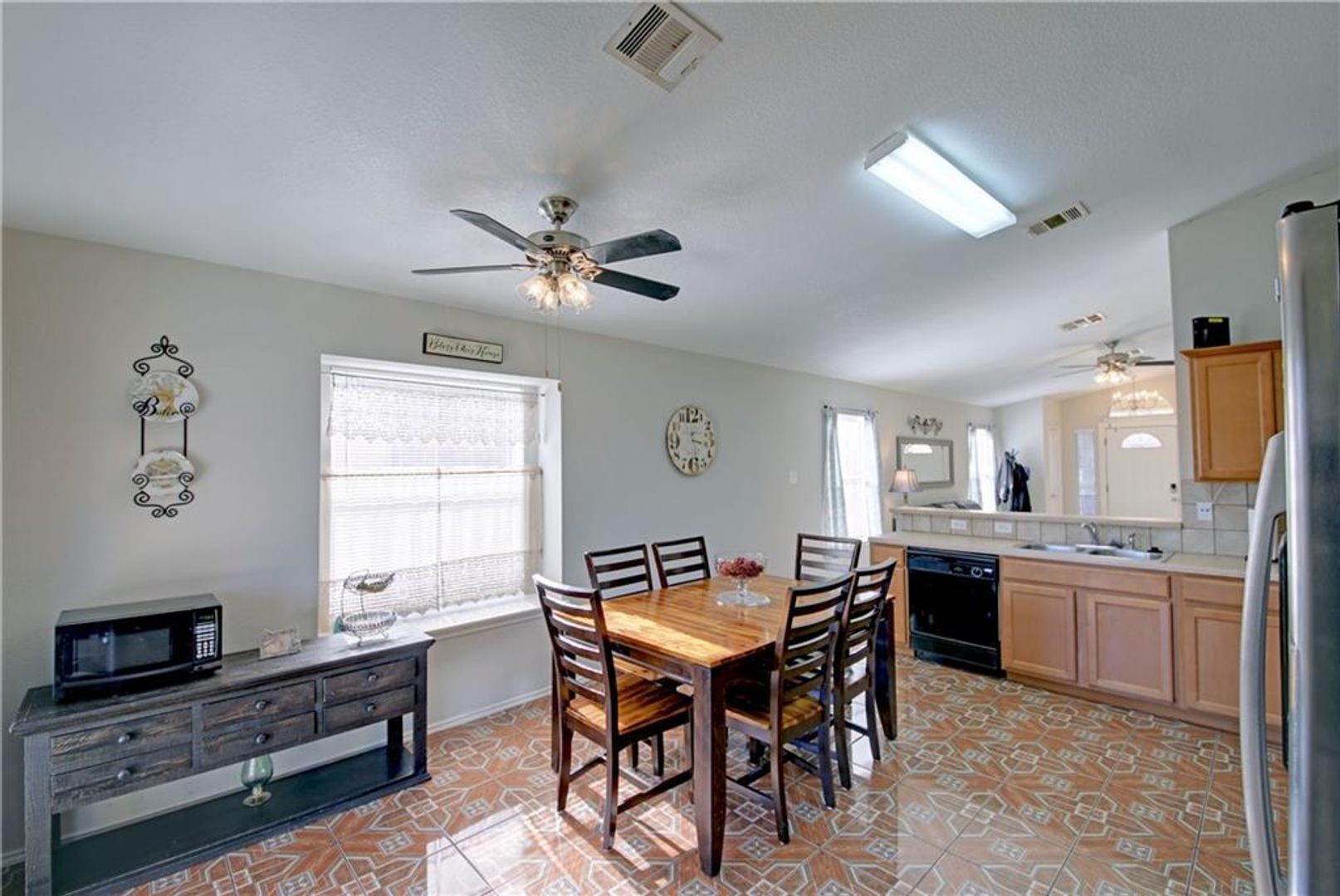 Does NOT come with washer or dryer. New Refrigerator, Very clean well maintained one-story home. Large kitchen with eat-in dining open to the family room. MIL plan with the master with a walk-in closet and full bath. Nice size secondary bedrooms. Lots of natural light. Nice shaded front yard with covered front porch. Back yard great for entertaining with covered patio and privacy fence. A very desirable location 20 minutes downtown.