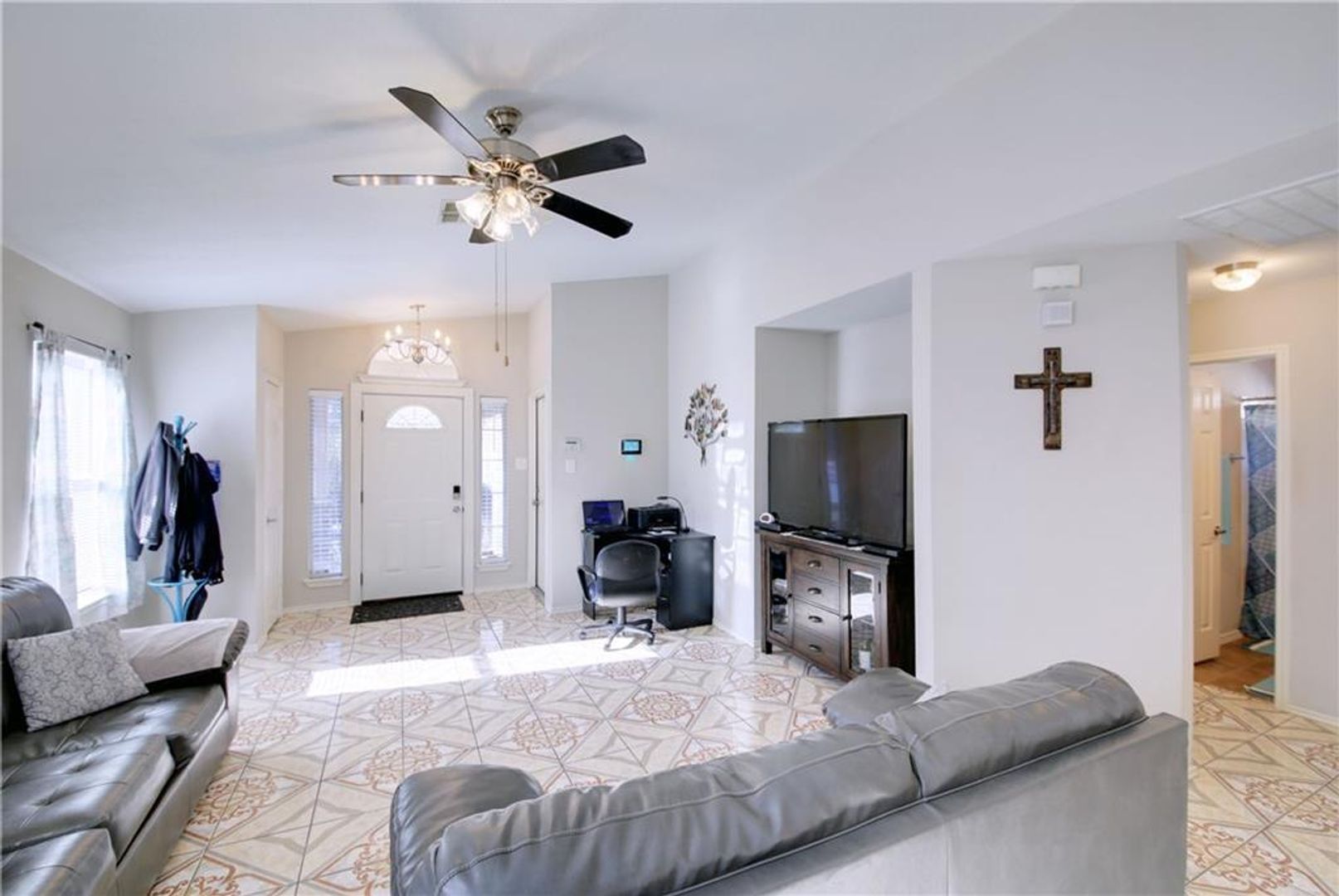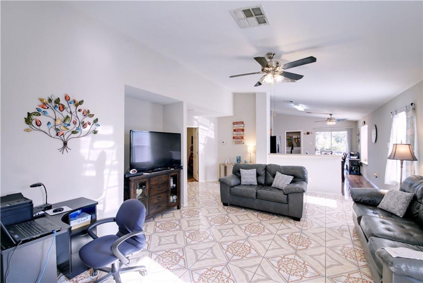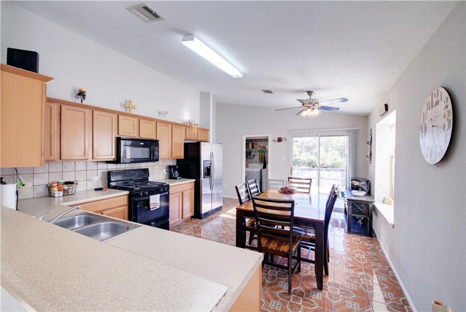 Does NOT come with washer or dryer. New Refrigerator, Very clean well maintained one-story home. Large kitchen with eat-in dining open to the family room. MIL plan with the master with a walk-in closet and full bath. Nice size secondary bedrooms. Lots of natural light. Nice shaded front yard with covered front porch. Back yard great for entertaining with covered patio and privacy fence. A very desirable location 20 minutes downtown.