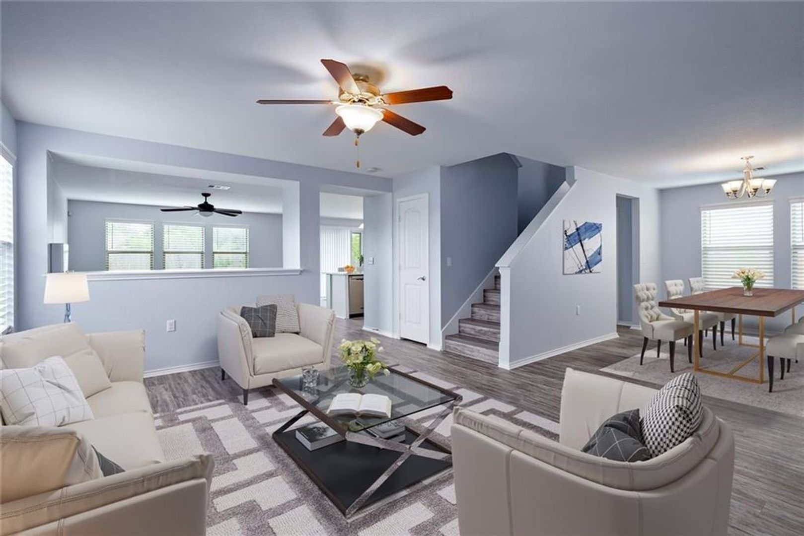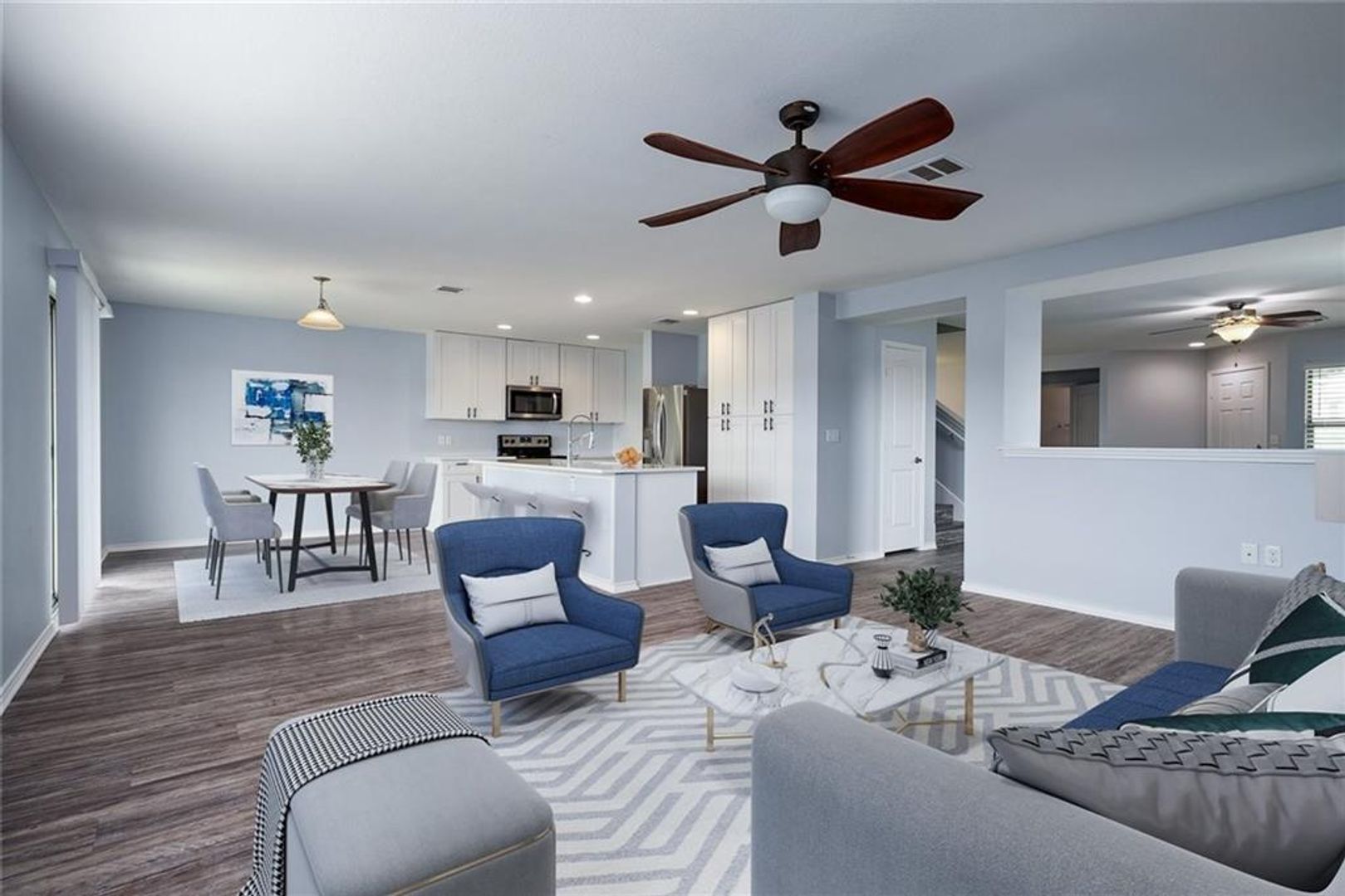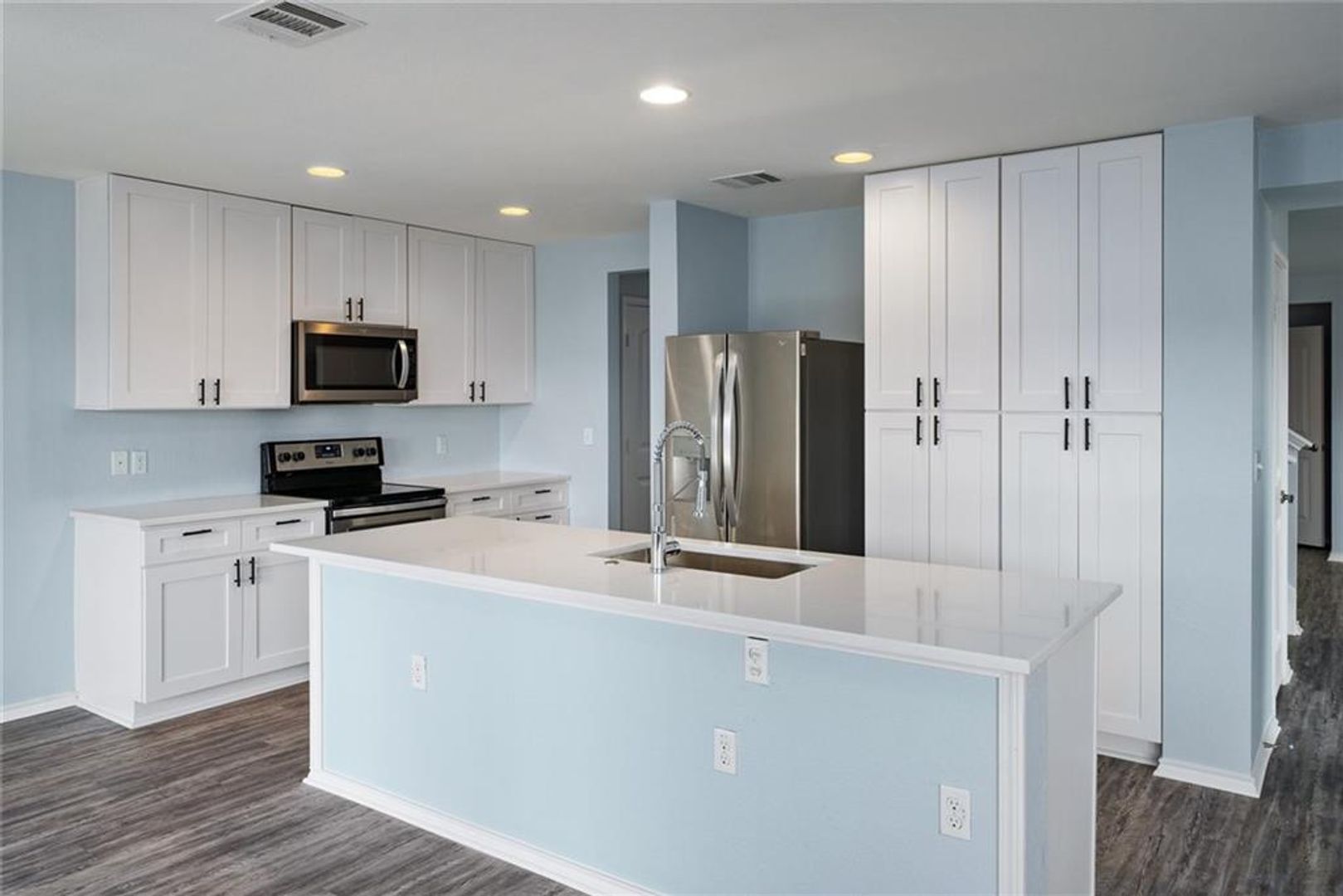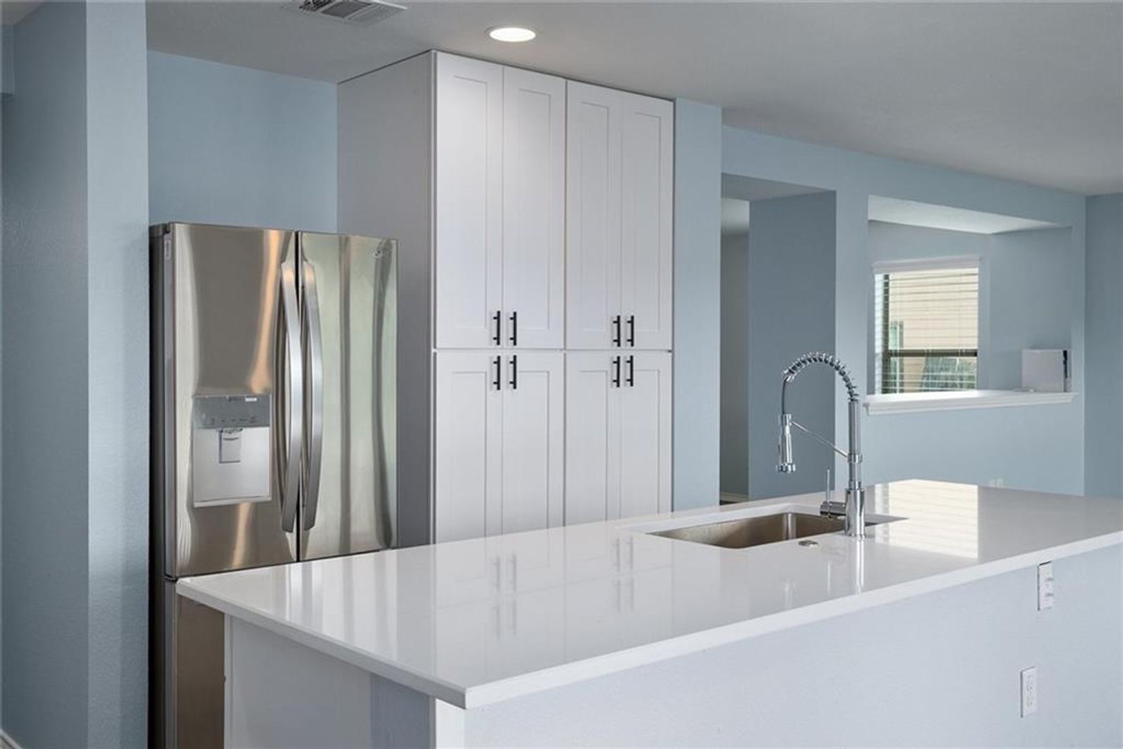 Beautifully remodeled gourmet kitchen with island and quartz countertops. Downstairs has 2 separate living areas, a breakfast nook in the kitchen and a separate dining area. Huge backyard with tons of tress including fruit trees. Upstairs has a third living space with a huge master suite and bathroom. Large walk-in closets and brand new vanities in all the bathrooms. Home has washer and dryer in unit already and brand new refrigerator. Lots of space, natural light and storage. Located just 20 minutes from downtown Austin and Tesla factory.